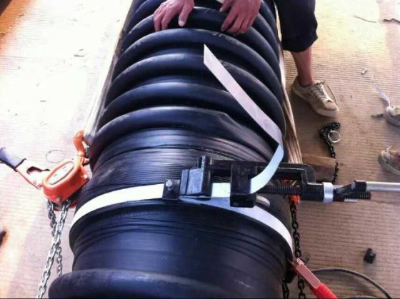 繞在加熱的滾筒模具上,保證了結構壁管熔接縫質量。特別是結構設計中平料帶的熔接縫被聚乙烯包覆支撐管所覆